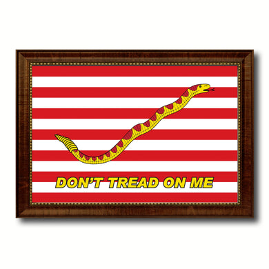 First Navy Jack Don't Tread On Me 1776 Tea Party Military Flag Canvas Print with Brown Picture Frame Home Decor Wall Art Gift Ideas