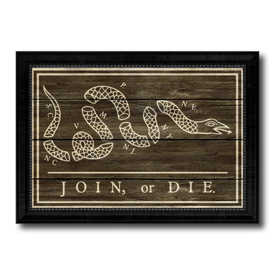 US Join or Die Snake Colonial Revolutionary War Military Flag Texture Canvas Print with Black Picture Frame Gift Ideas Home Decor Wall Art
