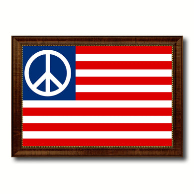 Peace Sign American Military Flag Canvas Print with Brown Picture Frame Home Decor Wall Art Gift Ideas