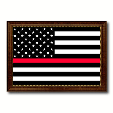 Thin Red Line Honoring our Men and Women of Law Enforcement American USA Flag Canvas Print with Brown Picture Frame Home Decor Wall Art Gift Ideas