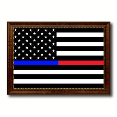Thin Blue Line Police & Thin Red Line Firefighter Respect & Honor Law Enforcement First Responder American USA Flag Canvas Print with Picture Frame Home Decor Wall Art