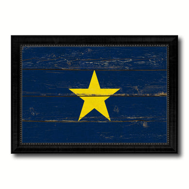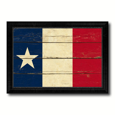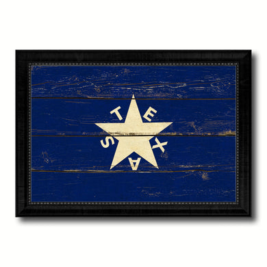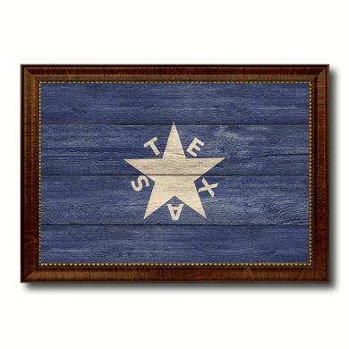 Texas History Lorenzo De Zavala Military Flag Texture Canvas Print with Brown Picture Frame Home Decor Wall Art Gifts