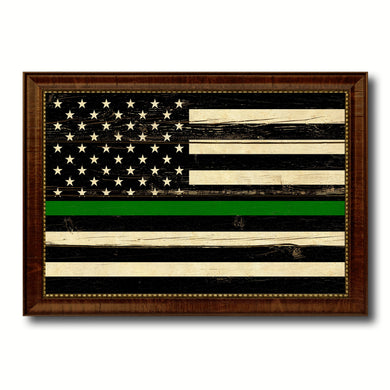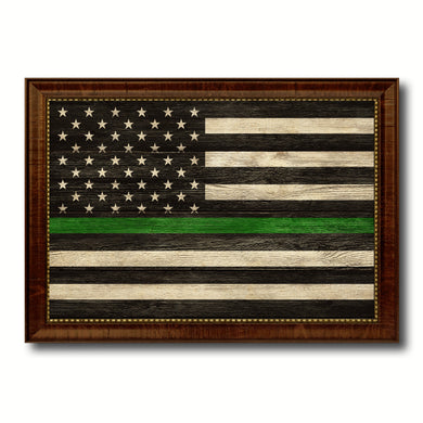Thin Green Line Support Border Patrol American USA Flag Vintage Canvas Print with Brown Picture Frame Gifts Ideas Home Decor Wall Art Decoration