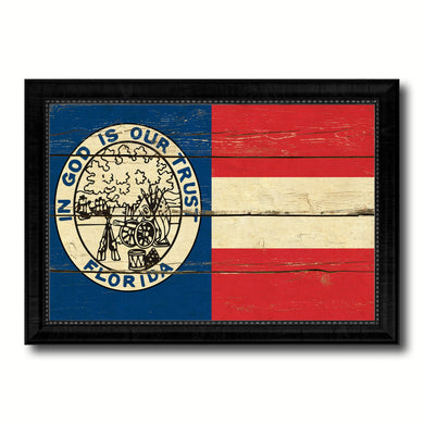 Civil War Florida Military Flag Texture Canvas Print with Brown Picture Frame Home Decor Wall Art Gifts