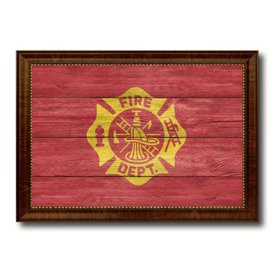 Fire Department Fire Fighter USA Flag Texture Canvas Print with Brown Picture Frame Home Decor Wall Art Gifts