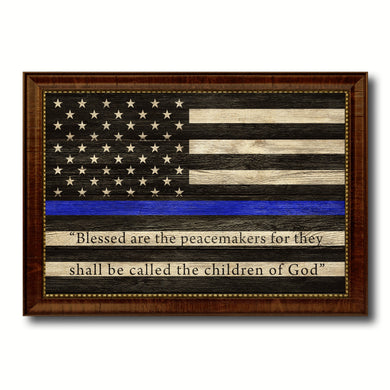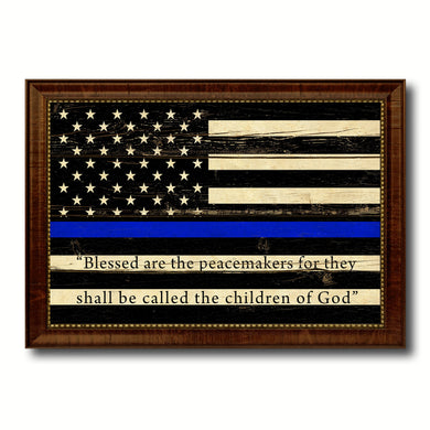 Law Enforcement Thin Blue Line Flag With Mathew 5:9 USA Flag Vintage Canvas Print with Brown Picture Frame Gifts Ideas Home Decor Wall Art Decoration