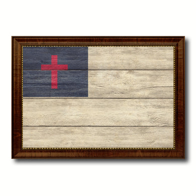Kayso Christian Religious Flag Texture Canvas Print with Brown Picture Frame Home Decor Wall Art Gifts