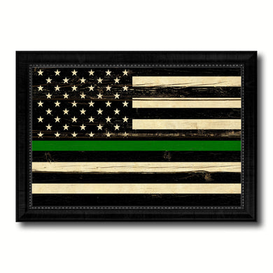 Thin Green Line Support Border Patrol American USA Flag Vintage Canvas Print with Black Picture Frame Home Decor Wall Art Decoration Gift Ideas