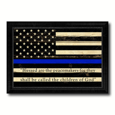 Law Enforcement Thin Blue Line Flag With Mathew 5:9 USA Flag Vintage Canvas Print with Black Picture Frame Home Decor Wall Art Decoration Gift Ideas