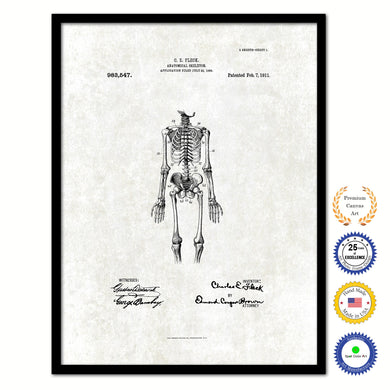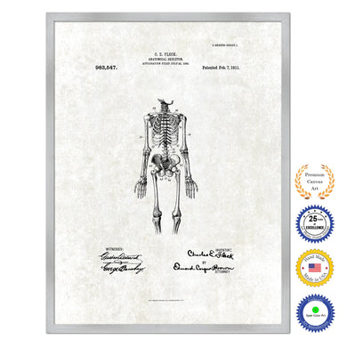 1911 Doctor Anatomical Skeleton Antique Patent Artwork Silver Framed Canvas Print Home Office Decor Great for Doctor Paramedic Surgeon Hospital Medical Student