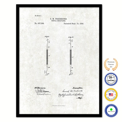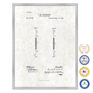 1896 Dentist Dental Excavator Antique Patent Artwork Silver Framed Canvas Print Home Office Decor Great for Dentist Orthodontist
