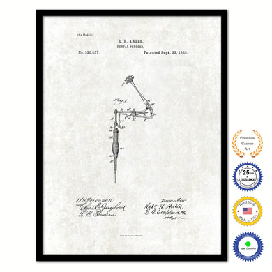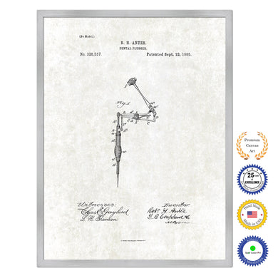1885 Dentist Dental Plugger Antique Patent Artwork Silver Framed Canvas Print Home Office Decor Great for Dentist Orthodontist
