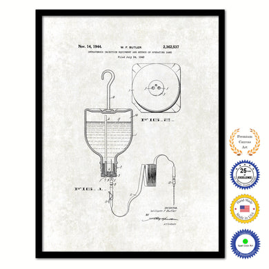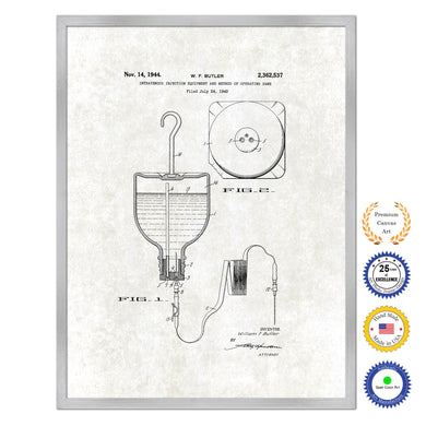 1944 Doctor Intravenous Injection Equipment Antique Patent Artwork Silver Framed Canvas Print Home Office Decor Great for Doctor Paramedic Surgeon Hospital Medical Student