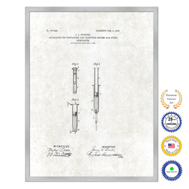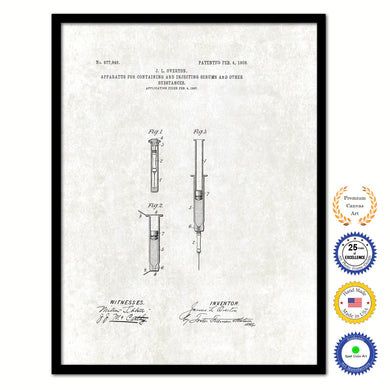 1908 Doctor Syringe Antique Patent Artwork Silver Framed Canvas Print Home Office Decor Great for Doctor Paramedic Surgeon Hospital Medical Student