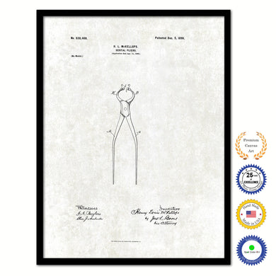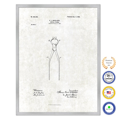 1899 Dentist Dental Pliers Antique Patent Artwork Silver Framed Canvas Print Home Office Decor Great for Dentist Orthodontist