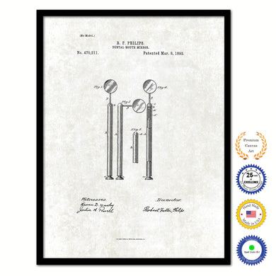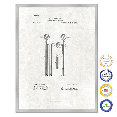 1892 Dentist Dental Mouth Mirror Antique Patent Artwork Silver Framed Canvas Print Home Office Decor Great for Dentist Orthodontist
