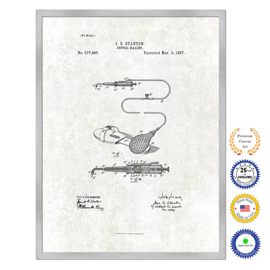1897 Dentist Dental Mallet Antique Patent Artwork Silver Framed Canvas Print Home Office Decor Great for Dentist Orthodontist