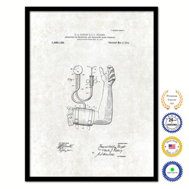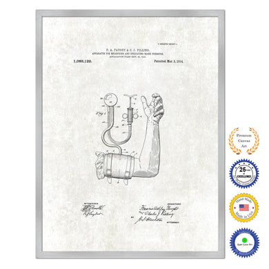 1914 Doctor Tools Blood Pressure Antique Patent Artwork Silver Framed Canvas Print Home Office Decor Great for Doctor Paramedic Surgeon Hospital Medical Student