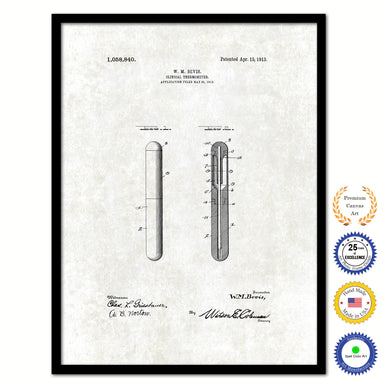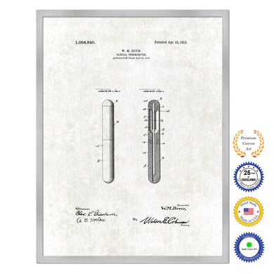1913 Doctor Clinical Thermometer Antique Patent Artwork Silver Framed Canvas Print Home Office Decor Great for Doctor Paramedic Surgeon Hospital Medical Student