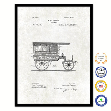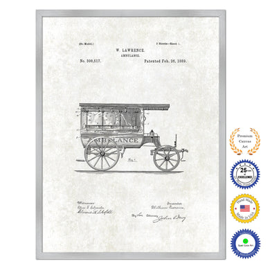 1889 Doctor Ambulance Antique Patent Artwork Silver Framed Canvas Print Home Office Decor Great for Doctor Paramedic Surgeon Hospital Medical Student
