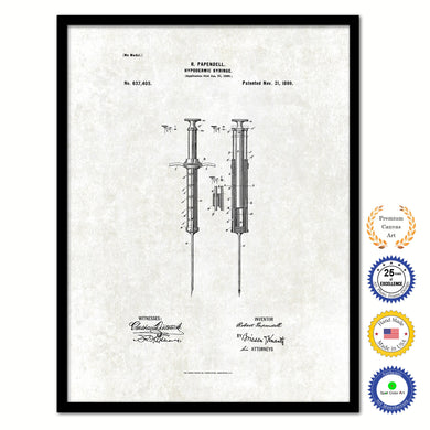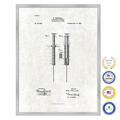 1899 Doctor Hypodermic Syringe Antique Patent Artwork Silver Framed Canvas Print Home Office Decor Great for Doctor Paramedic Surgeon Hospital Medical Student