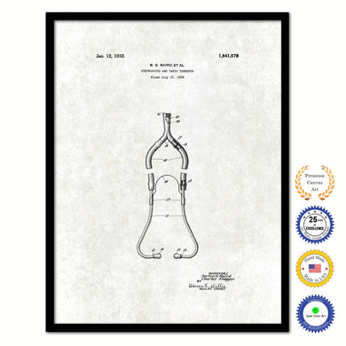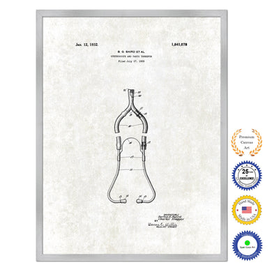 1932 Doctor Stethoscope Antique Patent Artwork Silver Framed Canvas Print Home Office Decor Great for Doctor Paramedic Surgeon Hospital Medical Student