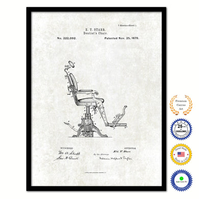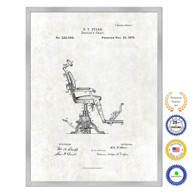 1879 Dentist's Chair Antique Patent Artwork Silver Framed Canvas Print Home Office Decor Great for Dentist Orthodontist