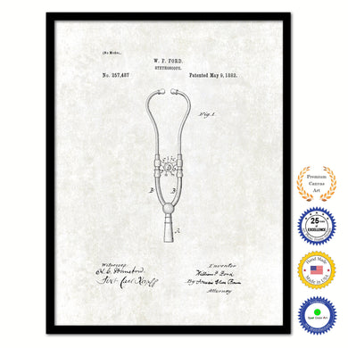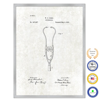 1882 Doctor Stethoscope Antique Patent Artwork Silver Framed Canvas Print Home Office Decor Great for Doctor Paramedic Surgeon Hospital Medical Student