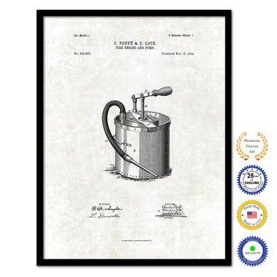1894 Firefighter Fire Engine and Pump Vintage Patent Artwork Black Framed Canvas Print Home Office Decor Great for Firefighter Fireman Firewoman