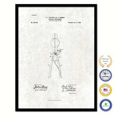 1900 Doctor Surgical Instrument Antique Patent Artwork Silver Framed Canvas Print Home Office Decor Great for Doctor Paramedic Surgeon Hospital Medical Student