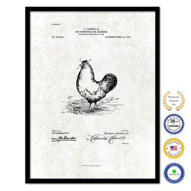 1903 Farming Eye Protector for Chickens Antique Patent Artwork Silver Framed Canvas Print Home Office Decor Great for Farmer Milk Lover Cattle Rancher