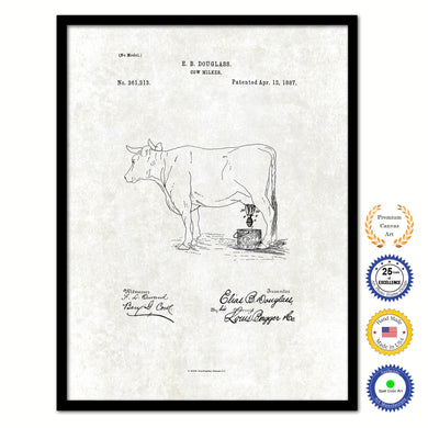 1887 Farming Cow Milker Vintage Patent Artwork Black Framed Canvas Print Home Office Decor Great for Farmer Milk Lover Cattle Rancher