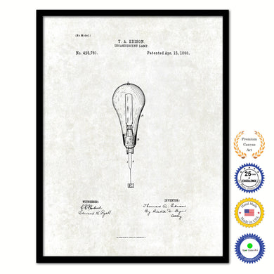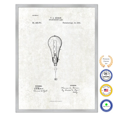 1890 Thomas Edison Incandescent Lamp Antique Patent Artwork Silver Framed Canvas Print Home Office Decor Great for Thomas Edison Lover Electrician Inventor
