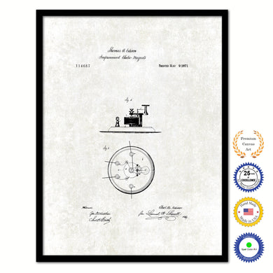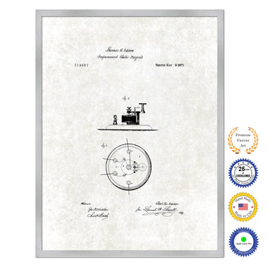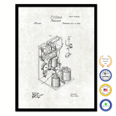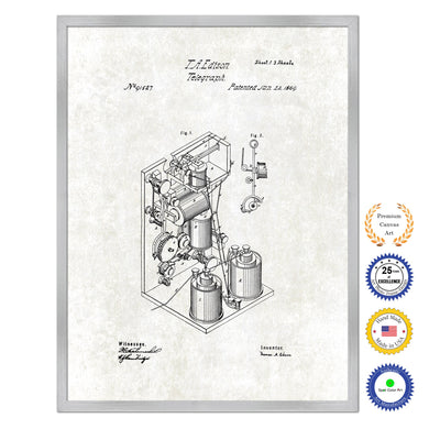 1869 Thomas Edison Telegraph Antique Patent Artwork Silver Framed Canvas Print Home Office Decor Great for Thomas Edison Lover Electrician Inventor