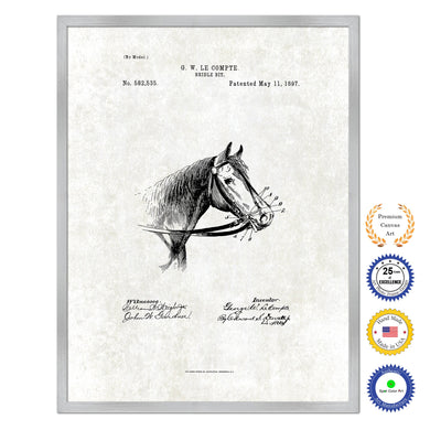 1897 Farming Horse Bridle Bit Antique Patent Artwork Silver Framed Canvas Print Home Office Decor Great for Farmer Milk Lover Cattle Rancher