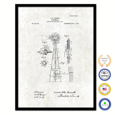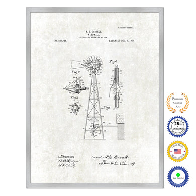 1906 Farming Windmill Antique Patent Artwork Silver Framed Canvas Print Home Office Decor Great for Farmer Milk Lover Cattle Rancher