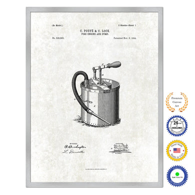 1894 Firefighter Fire Engine and Pump Antique Patent Artwork Silver Framed Canvas Print Home Office Decor Great for Firefighter Fireman Firewoman