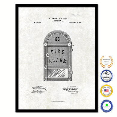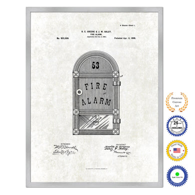 1899 Firefighter Fire Alarm Antique Patent Artwork Silver Framed Canvas Print Home Office Decor Great for Firefighter Fireman Firewoman