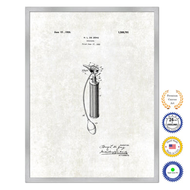 1926 Doctor Otoscope Tool Antique Patent Artwork Silver Framed Canvas Print Home Office Decor Great for Doctor Paramedic Surgeon Hospital Medical Student