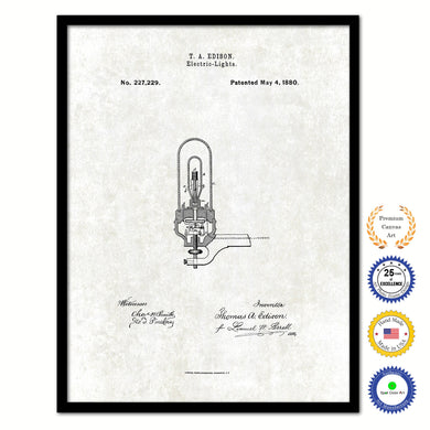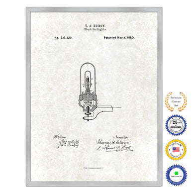 1880 Thomas Edison Electric Lights Antique Patent Artwork Silver Framed Canvas Print Home Office Decor Great for Thomas Edison Lover Electrician Inventor
