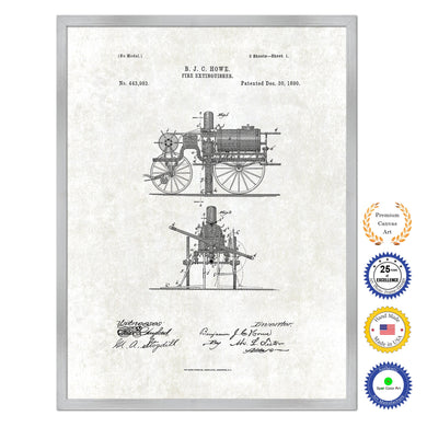 1890 Firefighter Fire Extinguisher Antique Patent Artwork Silver Framed Canvas Print Home Office Decor Great for Firefighter Fireman Firewoman
