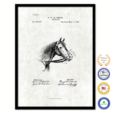 1897 Farming Horse Bridle Bit Vintage Patent Artwork Black Framed Canvas Print Home Office Decor Great for Farmer Milk Lover Cattle Rancher