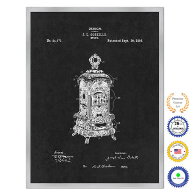 1895 Stove Old Patent Art Print on Canvas Custom Framed Vintage Home Decor Wall Decoration Great for Gifts