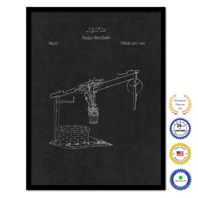 1849 Windlass Water Elevator Old Patent Art Print on Canvas Custom Framed Vintage Home Decor Wall Decoration Great for Gifts