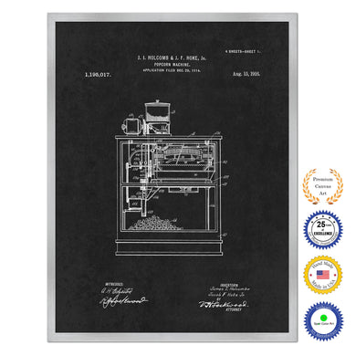 1916 Popcorn Machine Old Patent Art Print on Canvas Custom Framed Vintage Home Decor Wall Decoration Great for Gifts