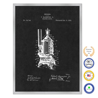 1895 Heating Stove Old Patent Art Print on Canvas Custom Framed Vintage Home Decor Wall Decoration Great for Gifts