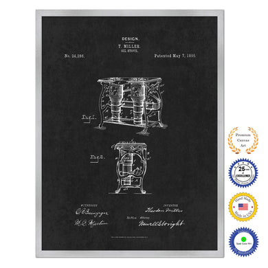 1895 Oil Stove Old Patent Art Print on Canvas Custom Framed Vintage Home Decor Wall Decoration Great for Gifts