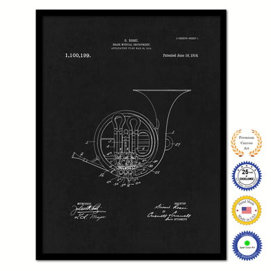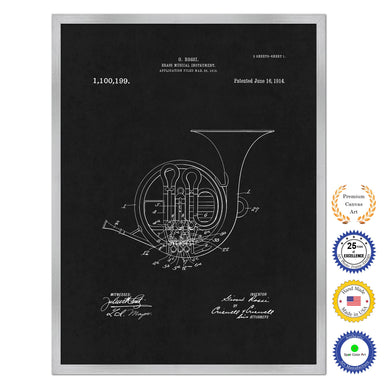 1914 French Horn Brass Musical Instrument Old Patent Art Print on Canvas Custom Framed Vintage Home Decor Wall Decoration Great for Gifts
