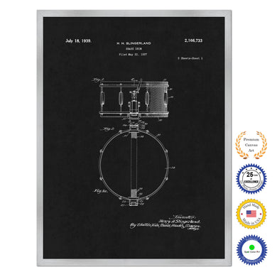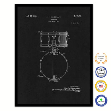 1939 Snare Drum Old Patent Art Print on Canvas Custom Framed Vintage Home Decor Wall Decoration Great for Gifts