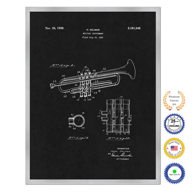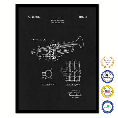 1939 Trumpet Musical Instrument Old Patent Art Print on Canvas Custom Framed Vintage Home Decor Wall Decoration Great for Gifts